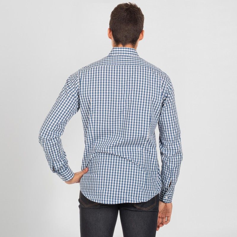 Camisa de hombre en manga larga. Modelo confeccionado en VICHY que cuenta con puños abotonados, canesú y pinzas en la espalda. Ideal para uniforme de hostelería y restauración, recepción, oficina o comercio.