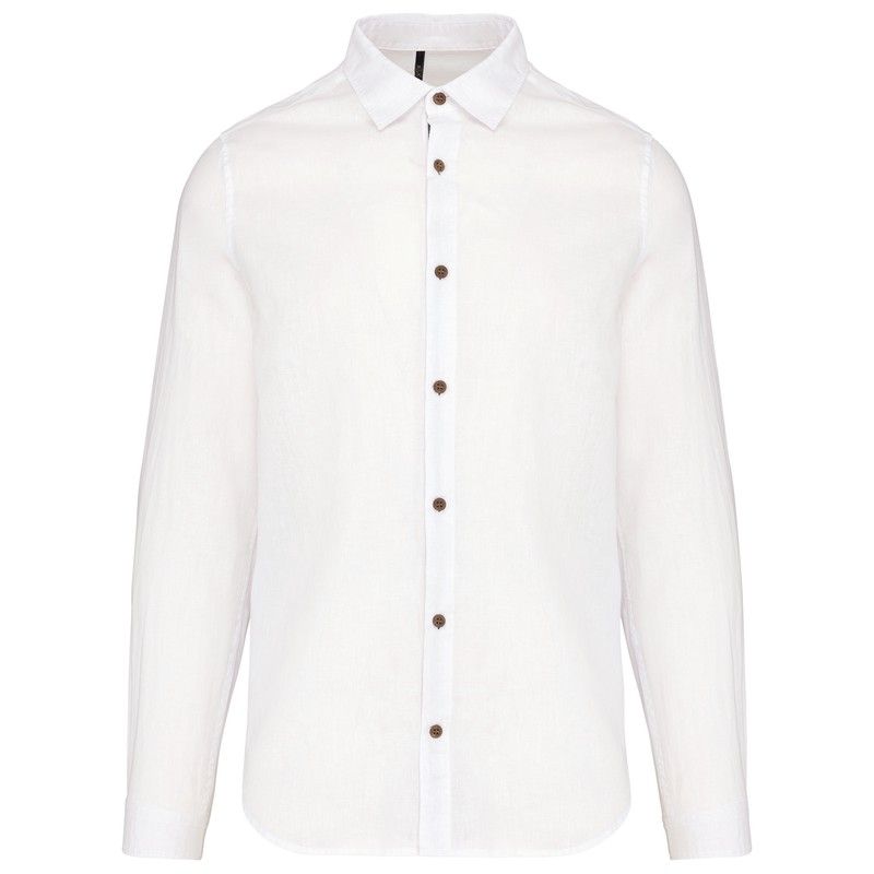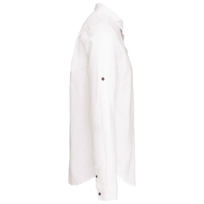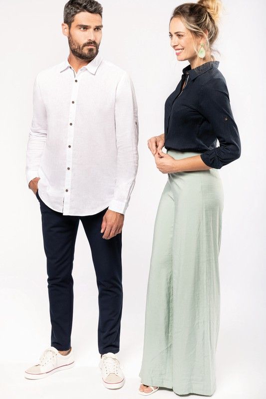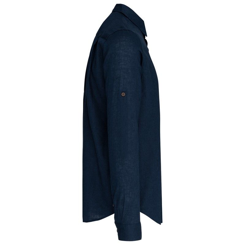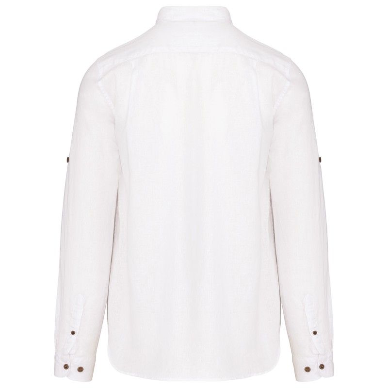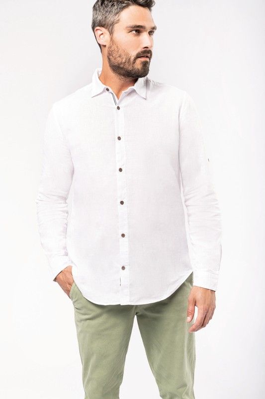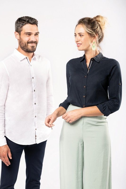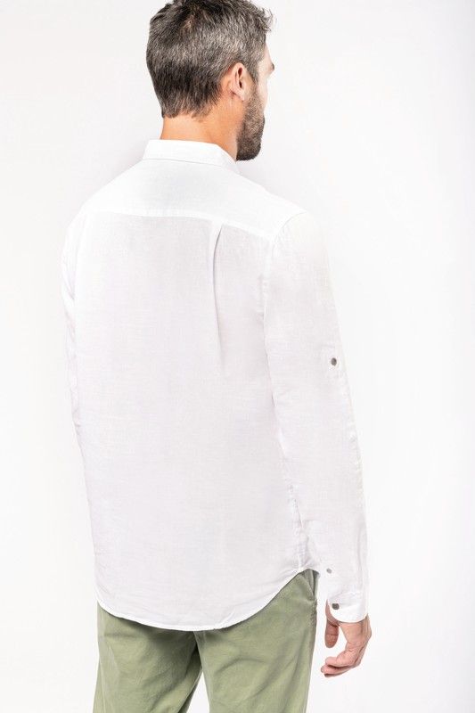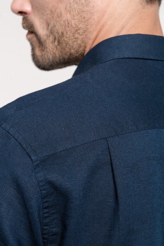 55% Leinen / 45% Baumwolle. Kontrasttasten. Verzierte Innenleiste. Knopfloser Kragen. Verstellbare Manschetten mit gepolstertem Kapuzinerkresse-Ärmel mit Knöpfen. Aufrollbare Ärmel mit Knopfleistenverstellung. Zusätzliche Schaltfläche.