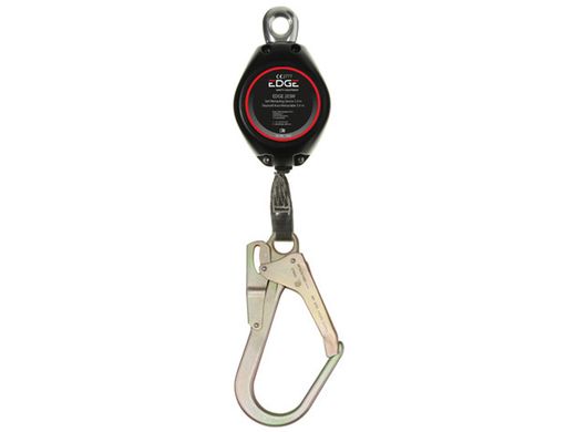 Bloque anticaídas con cinta Dyneema® de 3 m y carcasa de aluminio. Incluye gancho de andamio de acero Brooks con mosquetón y argolla giratoria. 140 kg.