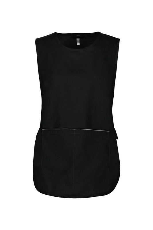 65% Polyester / 35% Baumwolle. Waschbar bei 60 ° C. Beständiger Stoff und bequemer Schnitt. Große vordere 2-Fach-Tasche mit 1 kleinen Innentasche. Seitenverstellgurte mit 2 Druckknöpfen. Kontrastpaspel oben auf der Tasche. 1 inneres Namensschild. Runder Saum. Länge in Größe L / XL: 78 cm.