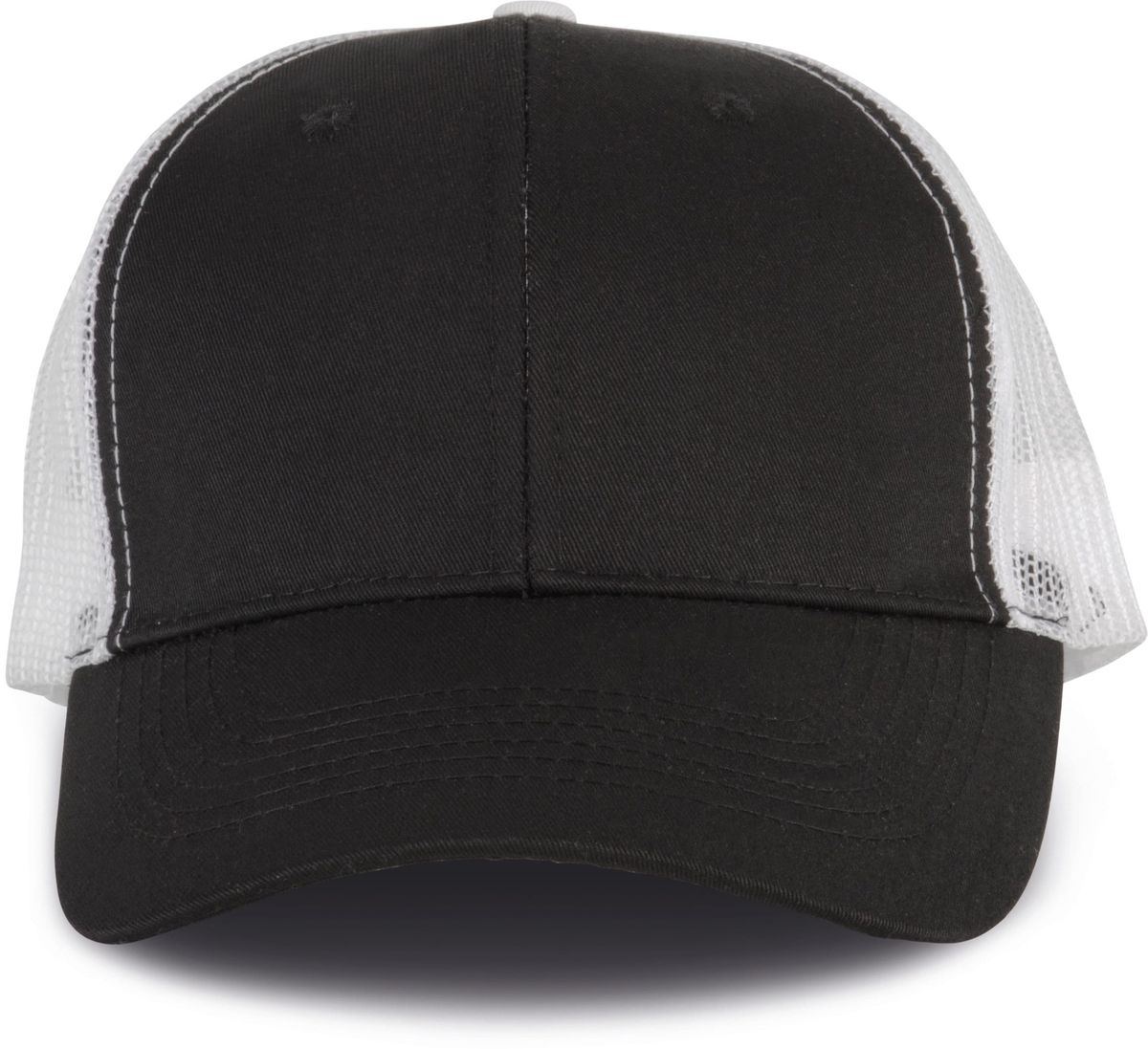 65 % Baumwolle / 35 % Polyester. Trucker-Cap mit 6 Panels, gebogenem Schirm und farblich abgestimmten Einsätzen auf der Vorderseite.