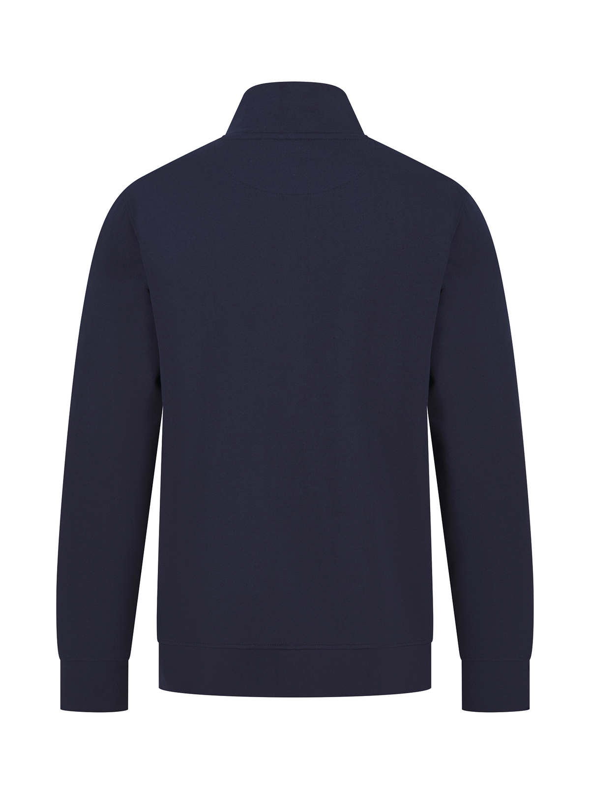 60 % regenerierte Baumwolle/40 % recycelter Polyester. Fleece mit gebürstetem Rücken. Unisex-Schnitt. Set-in-Ärmel. Reißverschlusskragen mit Nackenband. Kragen und Ärmelbündchen gerippt. 2 seitliche Reißverschlusstaschen.